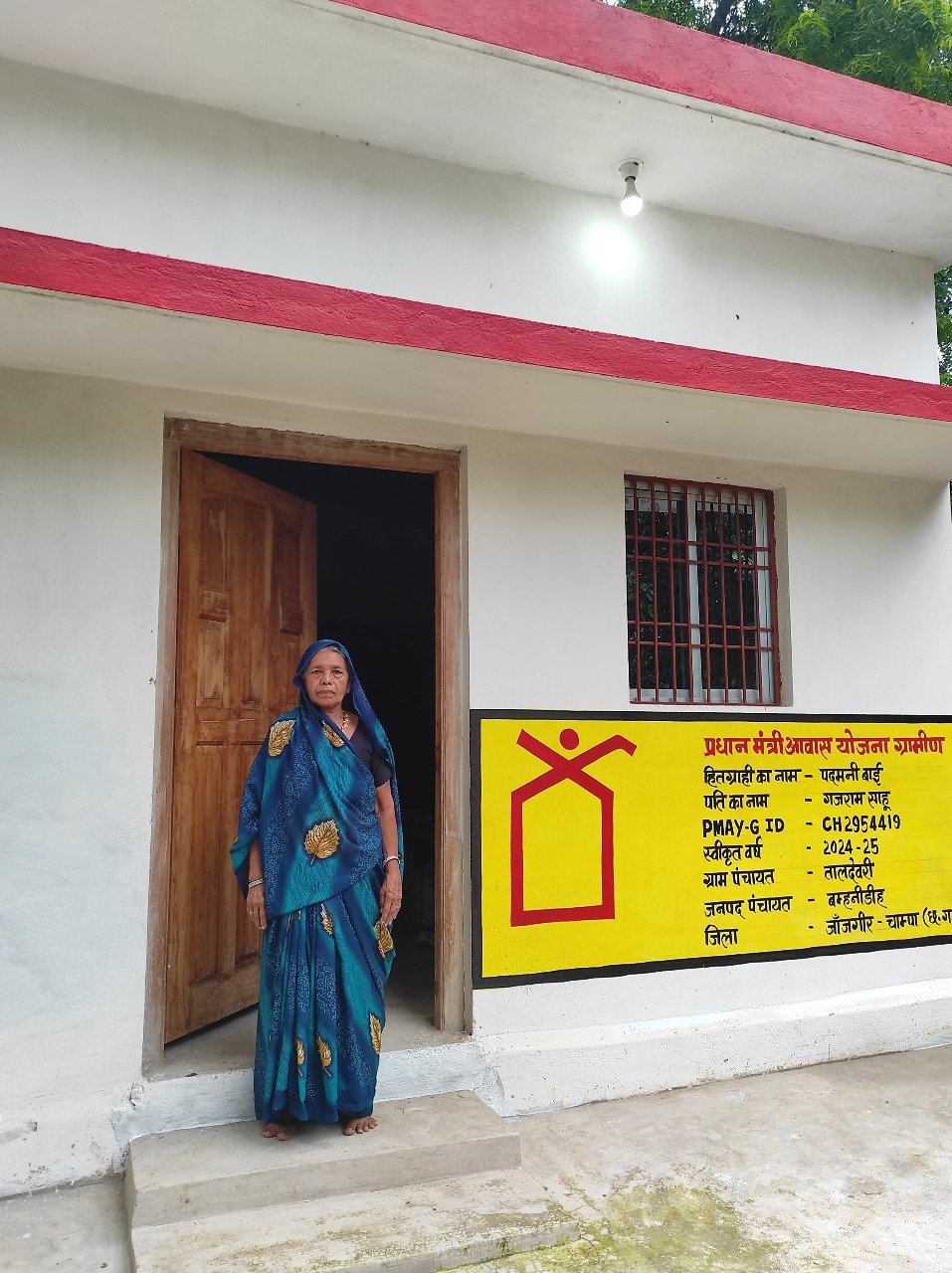 जांजगीर-चांपा 06 अगस्त 2025। ग्राम पंचायत तालदेवरी की श्रीमती पदमनी बाई पति स्व. गजराम साहू, उम्र 79 वर्ष, जो पूर्व में कच्चे मकान में निवासरत थीं। वर्ष 2022 में उनके पति के निधन के बाद मानसिक और आर्थिक रूप से वे अत्यंत परेशान होने लगी थीं। उनके सामने बड़ी समस्या अपने कच्चे मकान को पक्का करने की थीं। इसी परेशानी से जुझती हुई श्रीमती पदमनी बाई के सामने शासन की महत्वकांक्षी “प्रधानमंत्री आवास योजना” के तहत पक्का मकान स्वीकृत हुआ तो आशा की नई किरण और रोशनी से उनका घर जगमगा उठा।