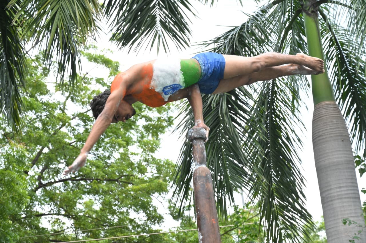 मुख्यमंत्री श्री साय ने ‘हर घर तिरंगा’ अभियान के अंतर्गत लगाए गए स्टॉल का अवलोकन किया। इस दौरान स्व-सहायता समूह की स्वच्छता दीदियों ने मुख्यमंत्री श्री विष्णु देव साय एवं उपमुख्यमंत्री श्री अरुण साव एवं अतिथियों को तिरंगा राखी बांधी। मुख्यमंत्री श्री साय ने इस अवसर पर स्वच्छता शपथ पोस्टर पर हस्ताक्षर भी किए। इस वर्ष स्वच्छ भारत अभियान के तहत‘‘स्वतंत्रता का उत्सव स्वच्छता के संग’’ के तहत मनाया जा रहा है, इसमें हर नागरिक को स्वच्छता को अपने जीवन में अपनाने की अपील की जा रही है। स्वागत कार्यक्रम के दौरान जिले के पामगढ़ विकासखंड के मलखंभ खिलाड़ियों ने अद्भुत शारीरिक संतुलन व परंपरागत कला का शानदार प्रदर्शन कर सभी को मंत्रमुग्ध कर दिया। मुख्यमंत्री ने खिलाड़ियों के उत्साह व समर्पण की सराहना की। मलखंभ की कलाबाजियों के दौरान जिला पंचायत परिसर तालियों की गड़गड़ाहट से गूंज उठा। मुख्यमंत्री ने रेशम विभाग द्वारा प्रदर्शित स्वचलित चरखा एवं वस्त्र निर्माण की विधि का भी अवलोकन किया तथा समूह की महिलाओं के उत्साहवर्धन हेतु उनसे संवाद किया। मुख्यमंत्री ने कहा कि महिलाओं द्वारा किए जा रहे ये प्रयास आत्मनिर्भर भारत की दिशा में सशक्त कदम हैं।