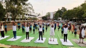 विकासखंड स्तरीय अंतर्राष्ट्रीय योग शिविर शासकीय महामाया उच्चतर माध्यमिक विद्यालय पामगढ़ में संपन्न