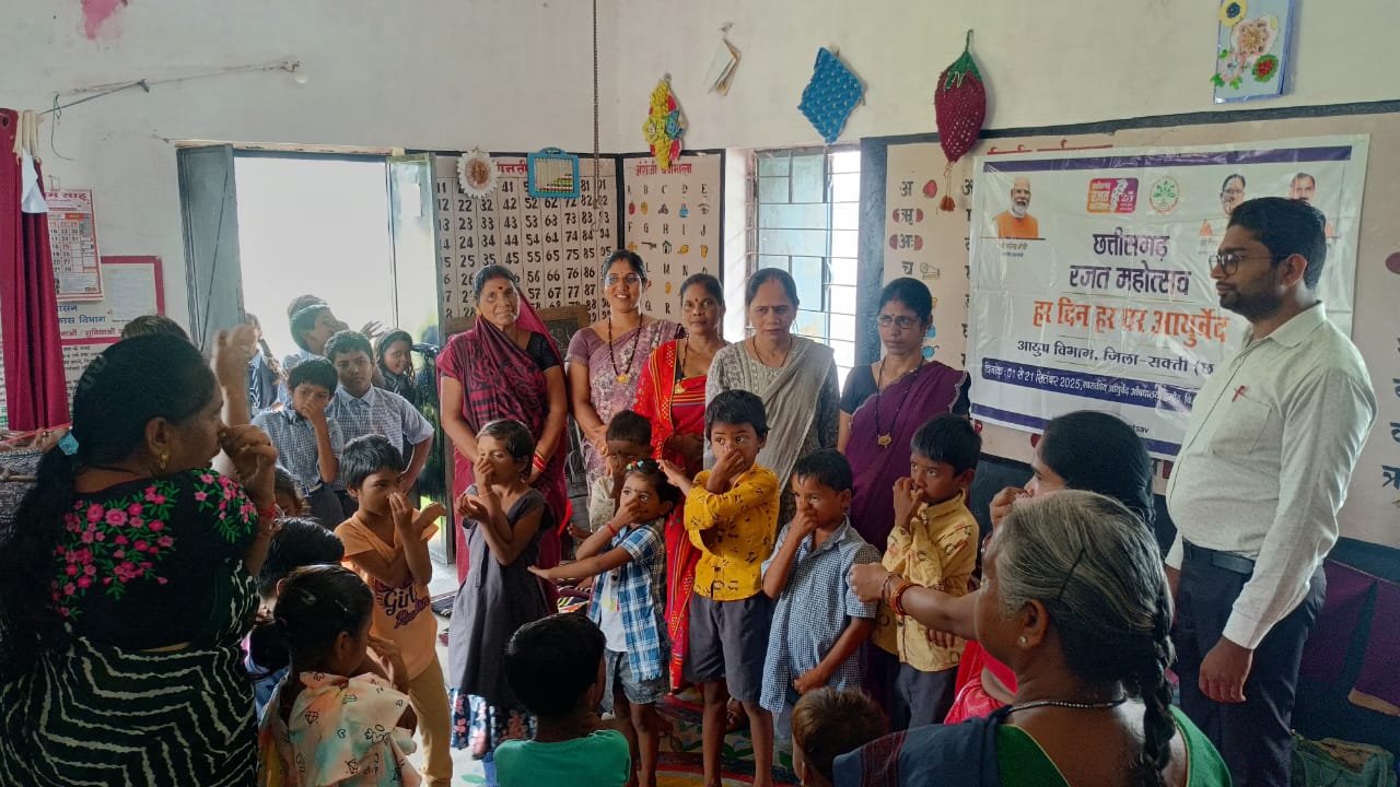 सक्ती, 12 सितम्बर 2025। रजत जयंती वर्ष 2025-26 के अवसर पर कलेक्टर श्री अमृत विकास तोपनो के निर्देशानुसार जिले में विभिन्न विभागों द्वारा अनेक जनहितकारी गतिविधियों का आयोजन किया जा रहा है। इसी कड़ी में रजत महोत्सव 2025 हर दिन हर घर आयुर्वेद के अंतर्गत आज आंगनबाड़ी केंद्र क्रमांक 2 हसौद में समस्त आंगनबाड़ी कार्यकर्ताओं और सुपरवाइजर की उपस्थिति में रजत जयंती महोत्सव मनाया गया।