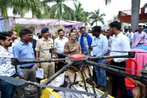 कार्यक्रम में ड्रोन से दवाई छिड़काव का लाइव प्रदर्शन किया गया