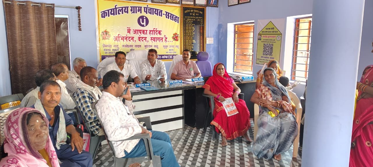 जांजगीर-चाम्पा, 26 अक्टूबर 2025। ग्राम पंचायत ससहा (जनपद पंचायत पामगढ़) में आज प्रातः 11 बजे से विशेष ग्राम सभा का आयोजन किया गया। बैठक की अध्यक्षता ग्राम पंचायत ससहा की सरपंच श्रीमती कुसुम साहू ने की।