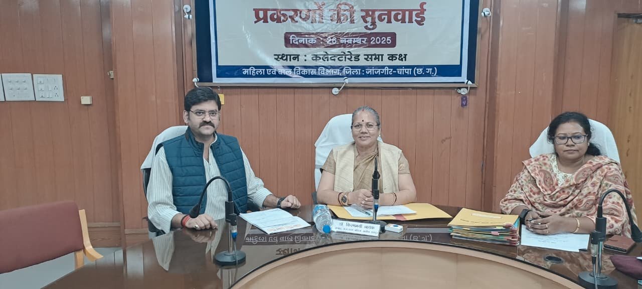 जांजगीर-चांपा 26 नवम्बर 2025। छत्तीसगढ़ राज्य महिला आयोग की अध्यक्ष डॉ. किरणमयी नायक ने कलेक्ट्रोरेट सभाकक्ष जांजगीर में महिला उत्पीड़न से संबंधित प्रस्तुत प्रकरणों पर जनसुनवाई की। छत्तीसगढ़ राज्य महिला आयोग की अध्यक्ष डॉ. किरणमयी नायक की अध्यक्षता में आज प्रदेश स्तर की 352 व जांजगीर-चांपा जिले में 13 वीं सुनवाई हुई। इस दौरान विधायक अकलतरा श्री राघवेन्द्र कुमार सिंह उपस्थित थे।
