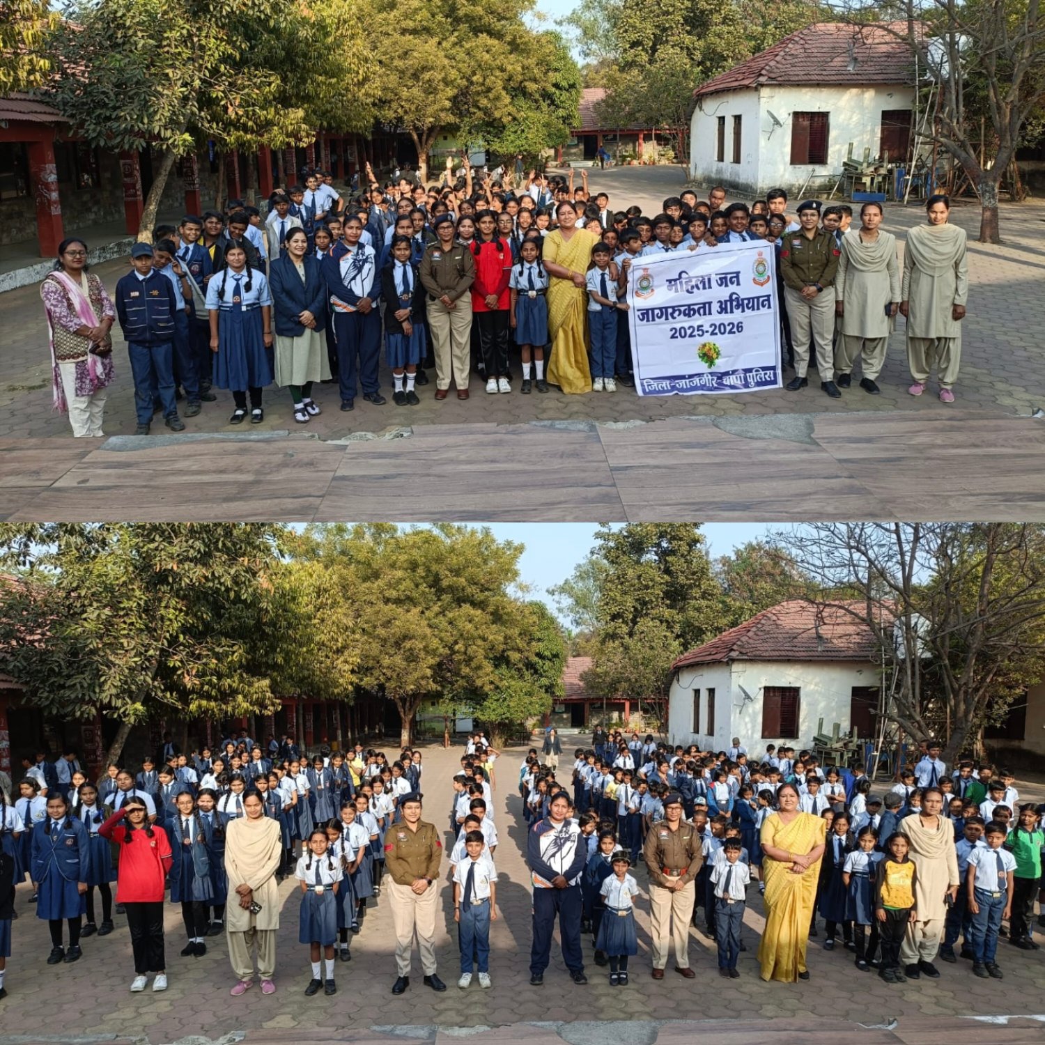 *CSP जांजगीर* द्वारा कार्यक्रम के दौरान उपस्थित छात्र छात्राओं एवं शिक्षकों को जागरूकता करते हुए अभियानों का मुख्य उद्देश्य के बारे में अवगत कराते हुए बताएं कि महिलाओं और बालिकाओं को उनके अधिकारों, कानूनों और सुरक्षा उपायों की जानकारी देना है, ताकि वे स्वयं को सुरक्षित महसूस कर सकें और किसी भी प्रकार के अपराध के विरुद्ध आवाज़ उठा सकें।