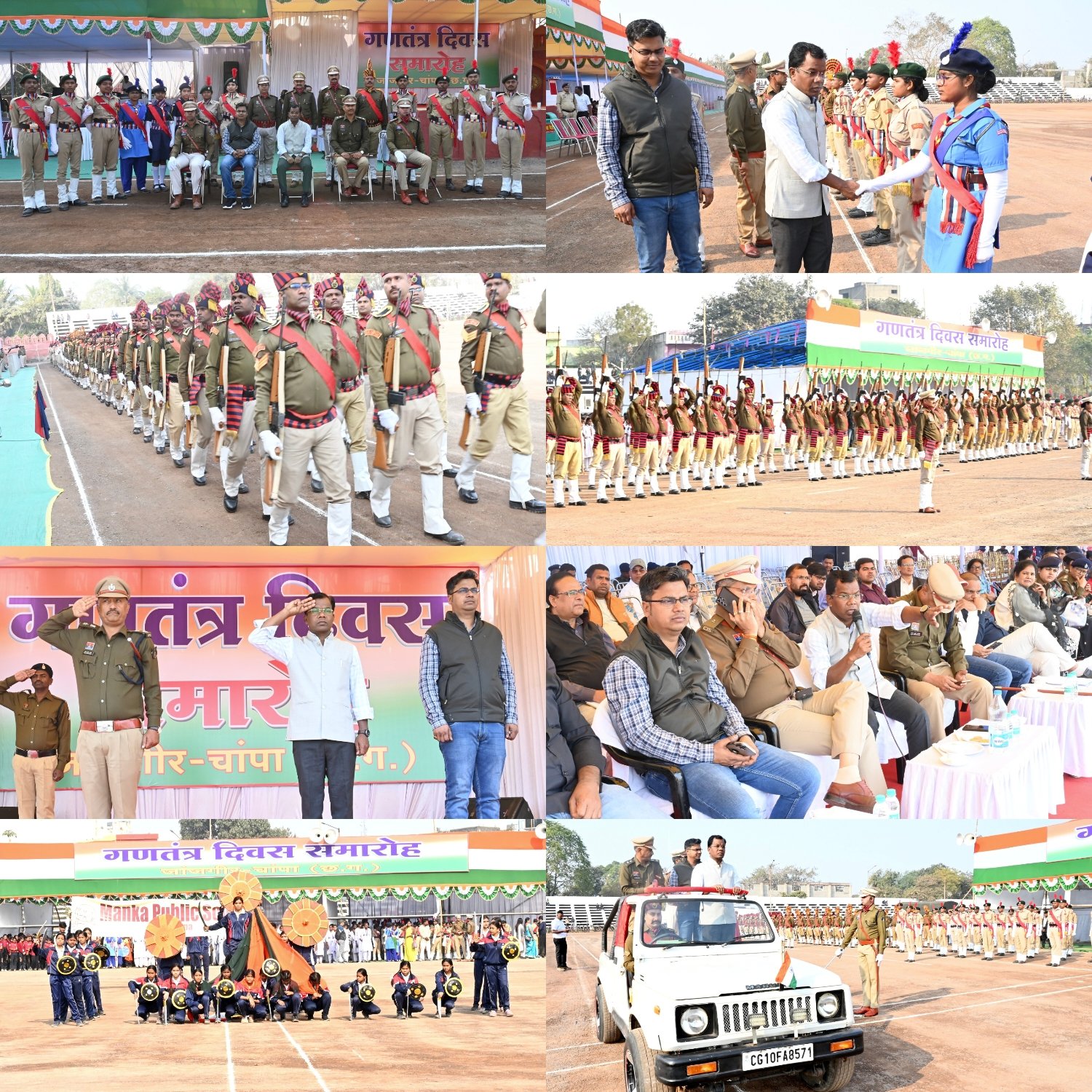 जांजगीर-चांपा 24 जनवरी 2026/ आज शासकीय हाई स्कूल मैदान में गणतंत्र दिवस के अवसर पर आयोजित होने वाले परेड एवं सांस्कृतिक कार्यक्रमों का अंतिम रिहर्सल संपन्न हुआ। इस दौरान पुलिस अधीक्षक श्री विजय कुमार पांडेय एवं जिला पंचायत मुख्य कार्यपालन अधिकारी श्री गोकुल रावटे द्वारा तैयारियों का जायजा लिया गया।