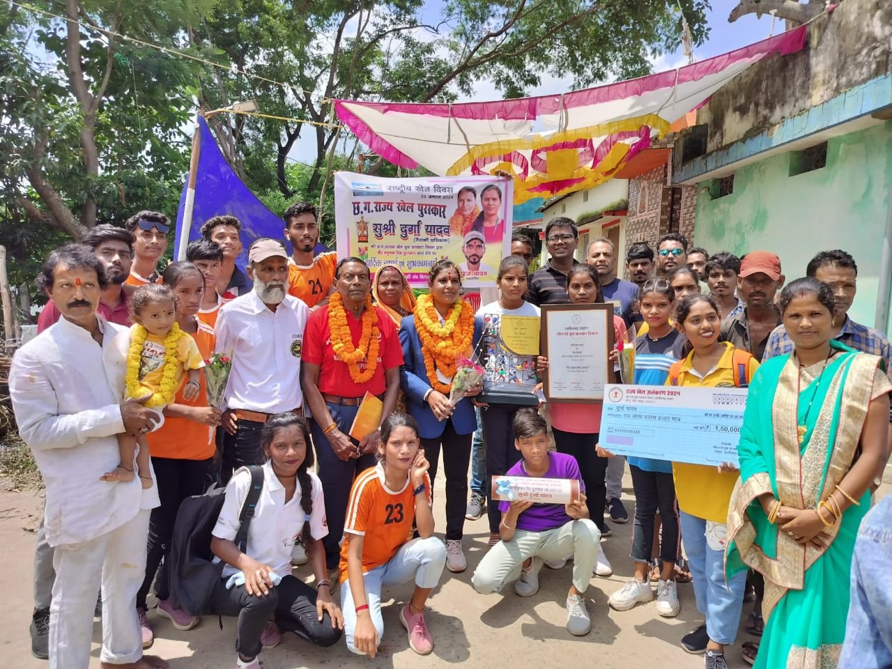 ज्ञात हो कि छत्तीसगढ़ शासन खेल युवा कल्याण विभाग द्वारा आयोजित राज्य खेल अलंकरण समारोह में अकलतरा की बेटी सुश्री दुर्गा यादव को मुख्यमंत्री विष्णुदेव साय जी के द्वारा वीर हनुमान सिंह पुरस्कार से सम्मानित किया गया रायपुर के पंडित दीनदयाल उपाध्याय ऑडिटोरियम में दुर्गा यादव को दिव्यांग तैराकी प्रशिक्षक उत्कृष्ट तैराकी प्रशिक्षक के लिए सम्मानित किया गया इस पुरस्कार में 150000 रुपए की राशि एवं प्रशस्ति पत्र प्रदान किया गया।