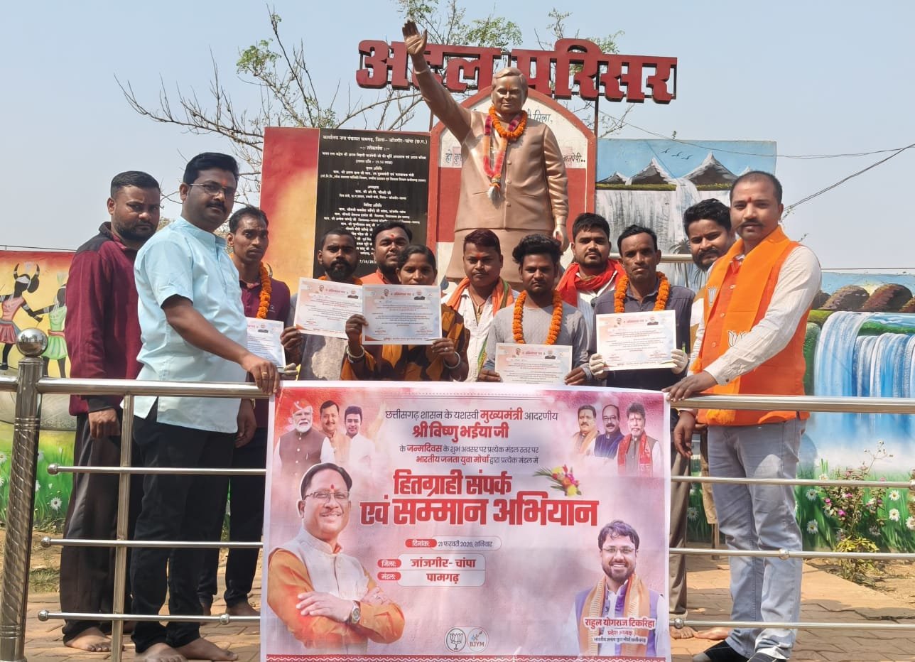 कार्यक्रम में जिला मंत्री अजा. मोर्चा मनोज घोष जी, मनोबल जाहिरे जी, पार्षद संजय खांडे जी, पार्षद अमित कुमार अनंत जी, मंडल उपाध्यक्ष युवा मोर्चा मुकेश कश्यप जी, संजू कौशिक जी, गोलू वर्मा जी सहित पामगढ़ मंडल के अनेक भाजपा कार्यकर्ता एवं पदाधिकारी उपस्थित रहे।