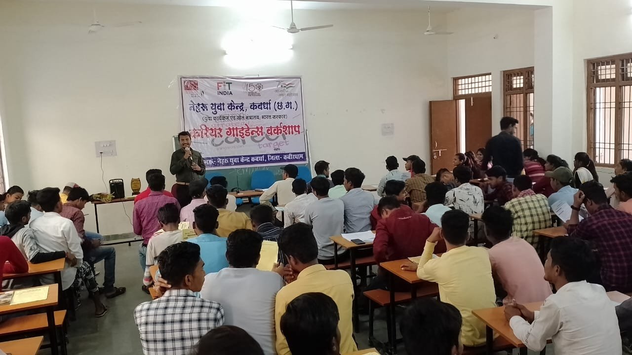 कवर्धा,नेहरू युवा केन्द्र कवर्धा (युवा कार्यक्रम एवं खेल मंत्रालय भारत सरकार) के तत्वाधान मे कैरियर मार्गदर्शन पर एक दिवसीय कार्यशाला का आयोजन लाइवलीहुड कॉलेज महाराजपुर में किया गया। कार्यशाला में सभी ब्लॉक से आये युवाओ को कैरियर सम्बंधित जानकारी विषय विशेषज्ञ द्वारा दिया गया। सहायक परियोजना अधिकारी लाइवलीहुड कॉलेज श्री दिवाकर द्विवेदी, ऋतुराज ताम्रकार, कुमुद मिश्रा एवं प्रदीप सेन ने युवाओ को कैरियर संबंधित जानकारी दी एवं उनको मार्गदर्शन भी दिया। इस अवसर पर राष्ट्रीय युवा स्वयंसेवक पुनीराम यादव, चोक सिंह राजपूत, कुलेश्वर निर्मलकर, लैनदास मोहले, कीर्ति चंद्रवंशी एवं मोहन साहू उपस्थित थे। कार्यक्रम का सफल संचालन पूर्व एनवाईवी पुरुषोत्तम निर्मलकर द्वारा किया गया।